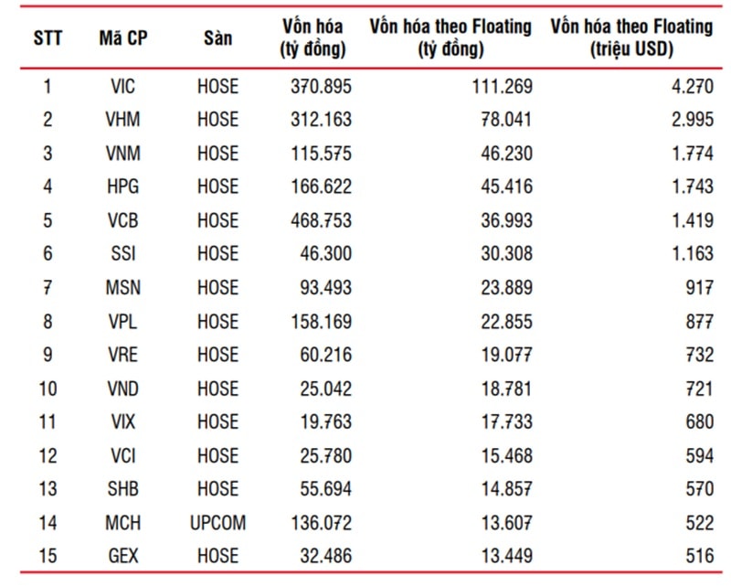 Theo đánh giá của SSI (cập nhật ngày 6/6/2025), nhóm cổ phiếu dự kiến hưởng lợi từ việc nâng hạng thị trường có thể bao gồm: